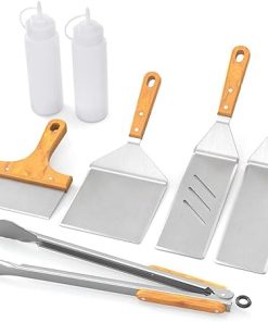 MaGiLL 10 PC Heavy Duty BBQ Grilling Accessories Grill Tools Set – Stainless Steel Grilling Kit with Wooden Handle, Ideal for Camping, Kitchen