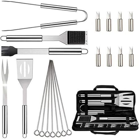 - 20-piece BBQ set, including basic BBQ utensils needed.