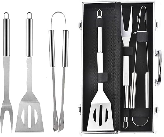 3PCS BBQ Grill Cooking Utensils Tool – Stainless Steel BBQ Tools Grill Tools Set w/Aluminum Carrying Case for Backyard/Beach Barbecue Camping Picnics Outdoor Activities