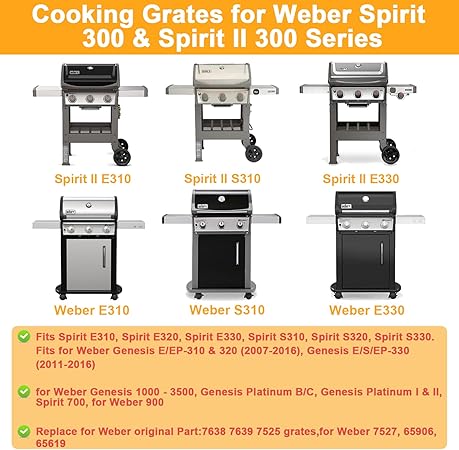 - ✅【For Weber Spirit II 300 Series Grills】Parts for weber spirit ii e310, Spirit II e 320, Spirit II E-330, Spirit II S-310, Spirit II S-320, Spirit II S-330. Replace for Weber original Part: for weber 7638 7639 7525 grates, for Weber 7527, 65906, 65619. for weber silver genesis b parts, for weber genesis gold b.