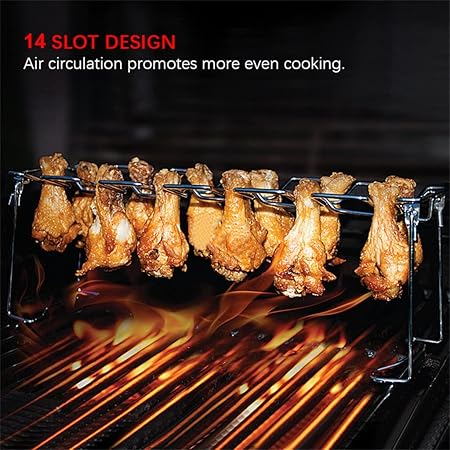 - 1.Large Capacity Chicken Rack Fits Up To 14 Chicken Legs, Wings, Thighs.