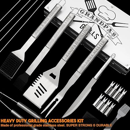 - Thoughtful Gift for Grandpa: celebrate Grandpa’s Passion for grilling with a gift that’s all about him; Suitable for Father’s Day, Christmas, birthdays, or any special occasion, this grilling tool set is designed to make him feel appreciated and is ready for outdoor adventures or at-home barbecues
