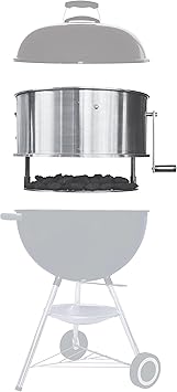 - Uses existing grill kettle, lid, cooking grate and charcoal grate