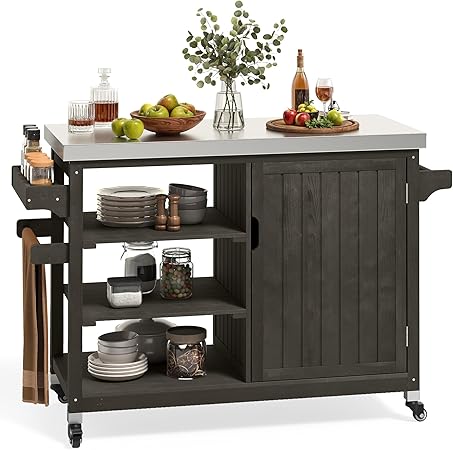 - Lockable Universal Wheels: The movable design allows you to push the kitchen island cart around the party easily and simply remove it out of the way. When you want a stationary model, just lock up the two-wheel locks