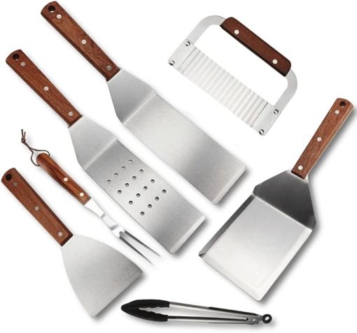 - ✿[Made From Sturdy Stainless Steel]:All the BBQ utensils are made from premium food-grade stainless steel . Sturdy and durable. Being easy to clean and dishwasher safe.Thick Wooden handle, not afraid of burns, comfortable grip.