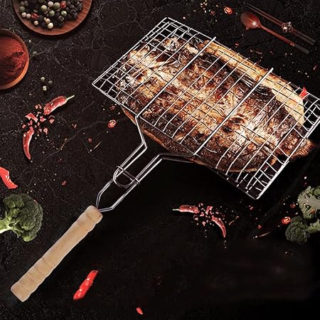 - The grill has a wooden handle, which can effectively prevent burns and use safely.