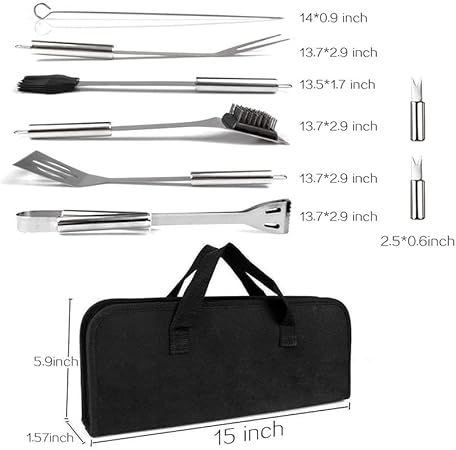 - 20-piece BBQ set, including basic BBQ utensils needed.