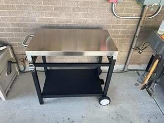 This cart is large and sturdy and went together well. I got it for our pizza oven, which was much more difficult to use before we got this cart. It puts the oven at the right height, and there is room for accessories. It also moves well so if we need to move it due to weather it can be done easily.