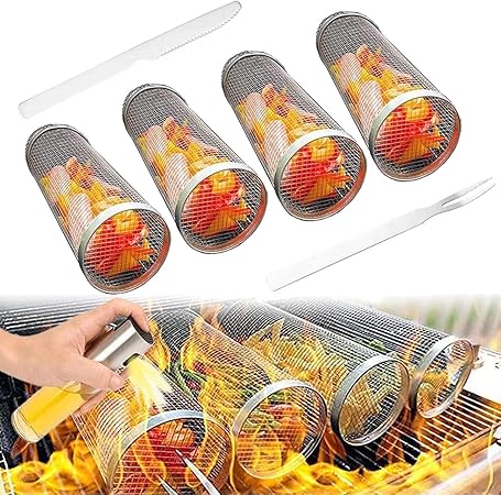Discover the Rolling Grill Basket Ever! Perfect for grilling veggies and fish. Elevate your BBQ game—order your 4-piece set today!