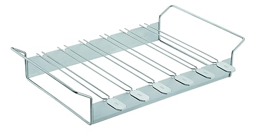 - The skewers can be rotated 90 degrees each time while held in place by the rack’s slots