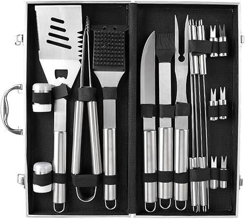 SEFAX 19Pcs Stainless Steel Grill Accessories, Portable Complete BBQ Tools Set for Men, Professional Grill Tools Set for Camping/Backyard Barbecue